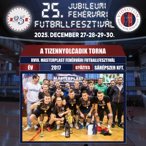 A XVIII. Fehérvári Futballfesztivál VIDEOTON FCF BARÁTI KÖR Nemzetközi Kispályás Labdarúgó Kupa „felnőtt korba lépett”. A nemzetközi Masterplast Kupán 28, az öregfiúk (34+) kupán 10, az RBD Szurkolói Kupán 8, a női kupán 6, a gyermek U11 kupán 6 csapat indult, a gálamérkőzéseken összesen 10 csapat vett részt – vagyis négy nap alatt 68 csapatot, mintegy 800 játékos láthattunk a VOK-ban (és még nem számoltuk hozzá a Ketrefoci Amatőr Kupa versenyzőit). Immáron 10 gárda érkezett a határokon túlról: 1 az öregfiúk, 2 a női és 7 a nemzetközi tornára. 1. Sárépszer Kft 2. JÓBARÁTOK 3. Workerline Villanegra 4. FTK ÉPÍTŐ ![]() 2018 – XIX. Masterplast Fehérvári Futballfesztivál