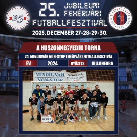 A Villanegra csapata megvédte a bajnoki címét újfent, így 2025-ben újra címvédőként léphetnek a parkettre!![]() 2025 – XXV. PADOS-GROUP Fehérvári Futballfesztivál